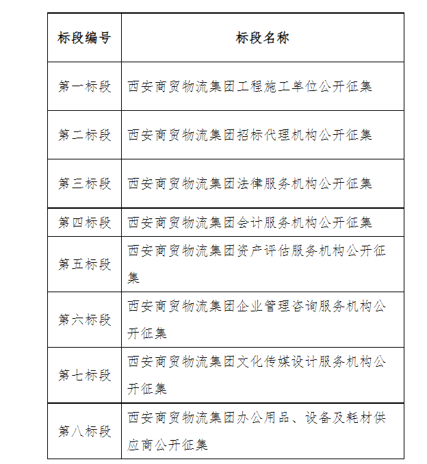 第二標段:西安商貿(mào)物流集團招標代理機構(gòu)公開征集