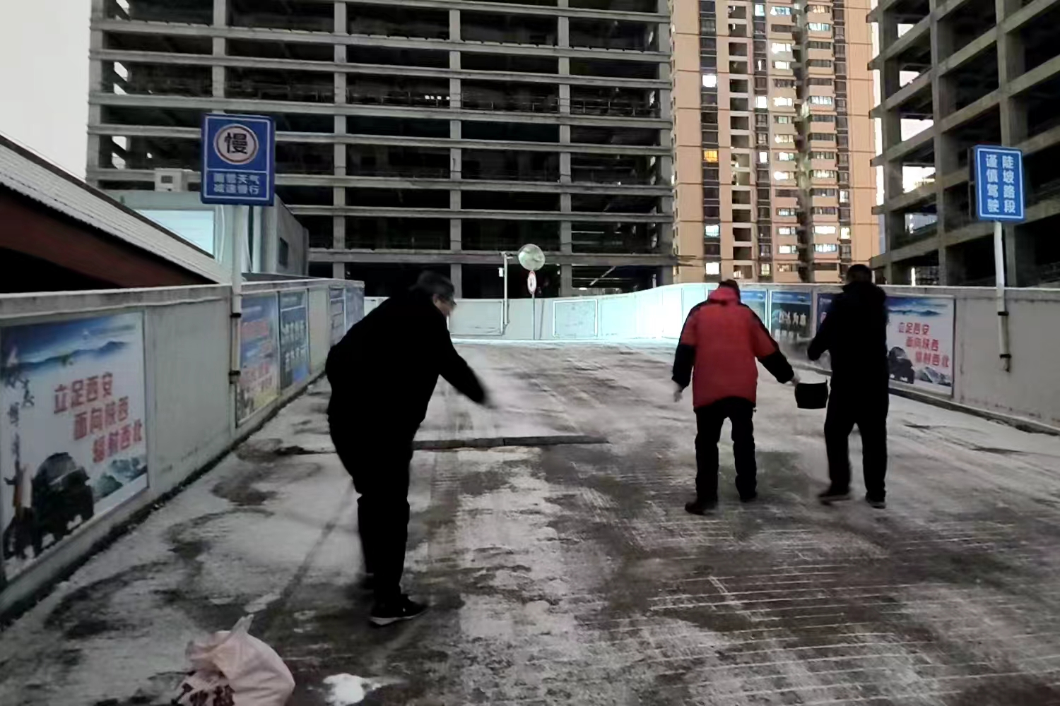 堅守初心,服務(wù)商戶。在除雪過程中,職工們逐戶提醒商戶做好門前防滑,協(xié)助搬運(yùn)貨物,并在重點(diǎn)路段鋪設(shè)防滑墊、設(shè)置警示標(biāo)識。一位商戶感慨道:“這么冷的天,市場職工幫我們把通道清理得干干凈凈,還想著我們的安全,真是太暖心了!"